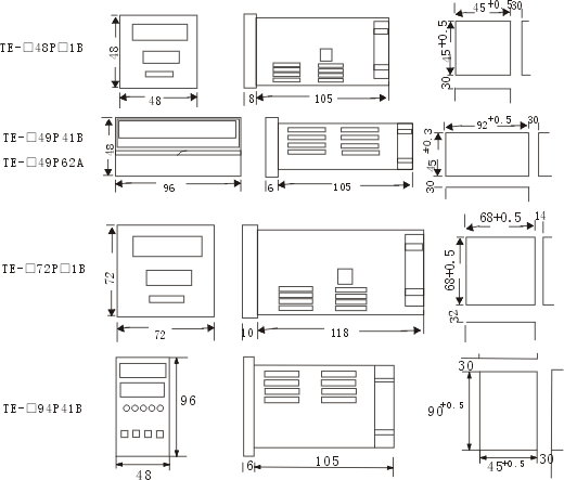 | 1、TE-□48P41B、TE-□49P41B、TE-□72P41B、TE-□94P41B使用说明: |