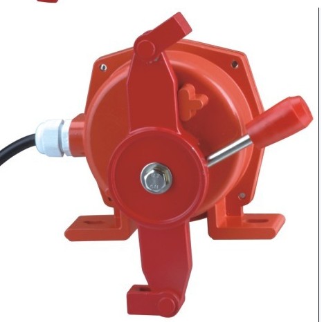 当现场发生紧急事故时,可接动开关转臂上的钢丝绳,启动开关,输出一开关信号,用于警告或停机,型机有一警示牌, 启动开关时,警示牌翻转呈垂直状态,故障排除后,按下警示牌,拉绳开关恢复工作状态。