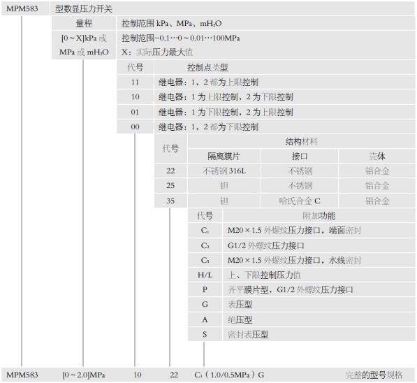 批零 MPM583型 数显压力开关 参数 图