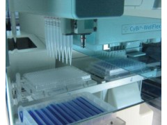 CyBi®-WellFlex是将3种不同种类的移液工具组合在一起的整合式移液工作站。一个量程范围从200 nL直到25或250 uL的96道移液头是进行96和384孔微孔板的整板复制及板间转移的理想工具。同时整合了一个灵活的、包含8通道和单通道移液工具的移液头,可作为梯度稀释、试管到微孔板的转移乃至点位取样等应用的工具。 CyBi®-WellFlex工作站可以实现整个试验的自动化流程—从反应体系的建立直到处理大规模的样品数。该系统包括4或5板位的主板架以及一个1或3板位的副板架用于放置试验微孔板、加样槽、试管、吸头盒及吸头洗站等工具。所有的实验流程可以通过CyBio® Composer软件快速简易的编制。