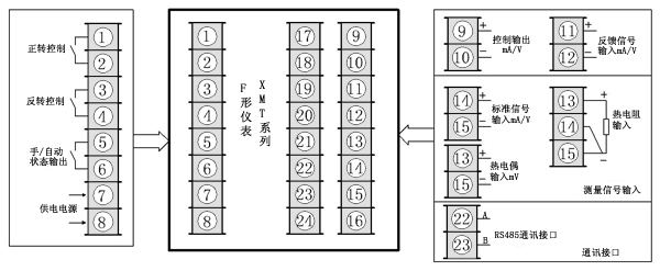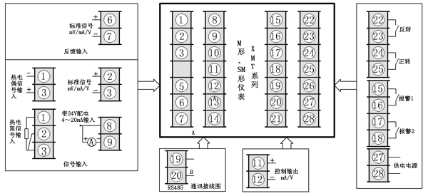 型号举例:XMT-721-22MD4-T(即:A-BCD-EFGHI-J)输入:热电偶;模拟控制输出:4~20mA;控制反馈信号:4~20mA;;带24VDC配电;带RS485通讯接口;电源220V AC开关电源供电;横表:160×80㎜ 。