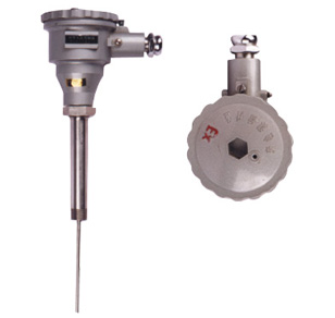 隔爆热电阻和可拆卸电阻的结构、原理基本相同,区别是,隔爆型产品的接线盒(外壳),在设计上采用防爆特殊结构,接线盒用高强度铝合金压铸而成,并具有足够的内部空间、壁厚和机械强度,橡胶密封圈的热稳定性均符合防爆标准。所以,当接线盒内部的爆炸性混合气体发生爆炸时,其内压不会破坏接线盒,而由此产生的热能不能向外扩散--传爆。