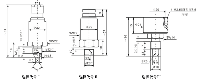 M12×1外螺纹(平口),型式Ⅱ(接插件连接)