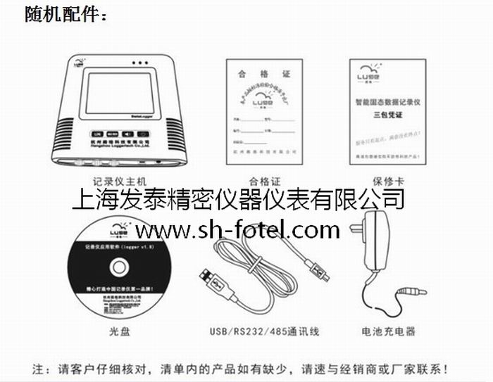 通讯数据线、记录仪配套软件、充电电源、合格证、保修卡、说明书、出厂测试报告书等各一