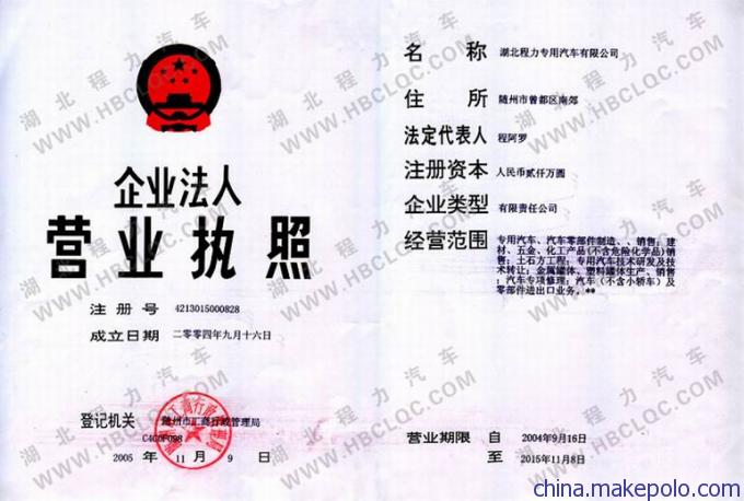 企业地址:湖北省随州市南郊区平原岗程力汽车工业园