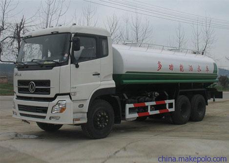7、东风后双桥、后八轮运水车(罐体容积16000--20000L)该车采用东风康明斯210马力柴油发动机,10.00-20轮胎,带方向助力,不带空调,断汽刹,6档变速箱, 6吨前桥, 10吨后桥,整车外形尺寸: 9950/2490/3200,总质量(kg):24700额定质量(kg):15400整备质量(kg):9105 ,该车罐体有效容积:16吨-20吨,该车带免征公告。