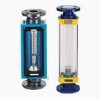 流量计主要由一根自下而上扩大的锥形玻管和一只随流体流量大小上下移动的浮子组成(图3)。流体自下而上流经锥管时,流体动能在浮子上产生的升力S和流体的浮力A使浮子上升,当升力S与浮力A之和等于浮子自身重力G时,浮子处于平衡,稳定在某一高度位置上,锥管上的刻度指示流体的流量值。 流量计中浮子读数位置按图2所示: |