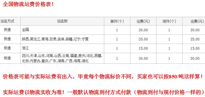 物流/提货时用户付运费(因用户遍布各地,公司不保证物流费用的一致,所以公司实行需方付运费政策,如有不便敬请谅解,特殊情况另定)