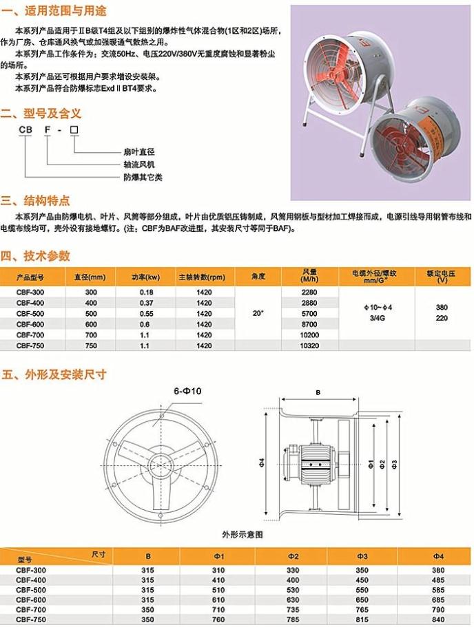 CBF/BAF-300为4个叶片,其他均为3个叶片,风叶材质都为铝合金(不会产生火花)