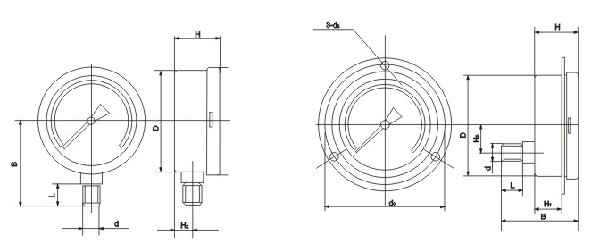 不锈钢耐震压力表的外壳用不锈钢材料制成(简称半钢),可在有腐蚀性、振动较大的恶劣环境中使用。