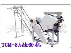 天阳全自动挂面机主要功能是把和好的面团经熟化加工并通过复合、压延工序压制后制成各种规格的面条,并截成一定长度进入下道工序,天阳全自动挂面机是一般饮食店、餐厅、单位食堂及中、小型挂面加工企业专用制面设备。天阳全自动挂面机由喂料装置、多对轧辊及调节机构、机架、面刀总成、截断、挑面机构和二组传动装置等组成。天阳全自动挂面机该设备具有结构紧凑、传动合理、操作使用方便,外形美观等特点。面辊采用精选特制冷硬合金材料,经车削和磨削加工,表面光洁度好,钢度和硬度高,不易被金属物碾伤和变形,因此压制的面片厚薄均匀、平整光滑、无破边、破洞、飞刃、色泽均匀、具有一定的韧性和强度,大大提高了面片的质量。TGM-8A型挂面机时产150-170公斤,动力2.2KW,外型尺寸1020×600×1300 (mm),重量260公斤,价格:8600元/台,TGM-8B型挂面机,时产200-220公斤,动力3KW,外型尺寸1500×650×1370(mm),重量380公斤,价格11600元/台购TGM挂面机培训面条的做法、面条制作等技术。
