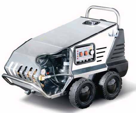 24V低电压控制系统 铜壳体,曲轴式三柱塞(陶瓷质)水泵 压力及蒸气状态可调 带过载热继电器、可长时间工作的四电机(1450转)