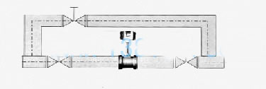 4)如需断流检查与清洗传感器,应设置旁通管道,如下图所示。