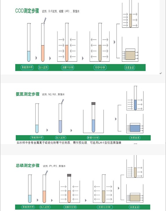 液晶显示、消解器和主机于一体、内置曲线不需自行调制、内置回归曲线、打印当前数据和历史数据、传输数据、消解器定时提醒、附带自动矫正功能、浓度直读不需换算。