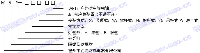 本公司温馨提示:MBY隔爆型防爆荧光灯分单根管20W、40W和双根管40W、60W、80W,固定式。如需其他安装方式请订购时注明。