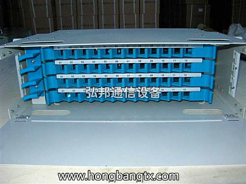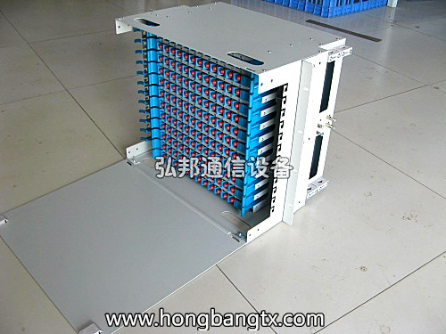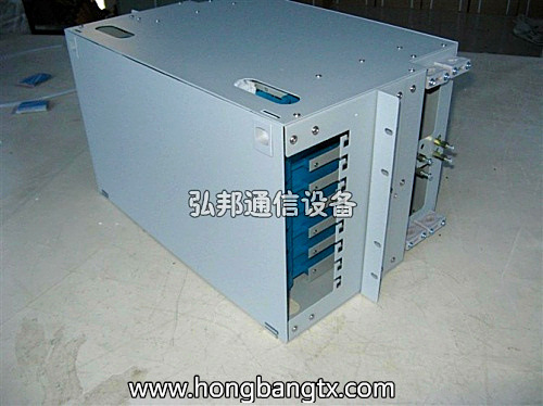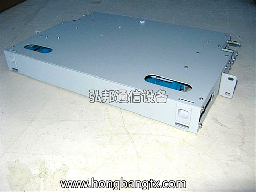 - 结构特点:用19″标准安装界面,适用于多种机架、机柜上的安装;采用金属结构,表面涂装静电喷塑,结构轻巧,外形美观;全模块化设计,全正面化操作,安装灵活、施工维护方便;抽拉式设计,集熔接配线一体化的熔接配线模块;适用于束状和带状光缆;每盘可卡式安装12个FC,SC及ST适配器,适配器正面呈30°角,既保证拉光纤的曲率半径,又可避免激光损伤眼睛;模块可取出至设备外操作,简单方便;光缆和尾纤均具有2m以上的盘储空间