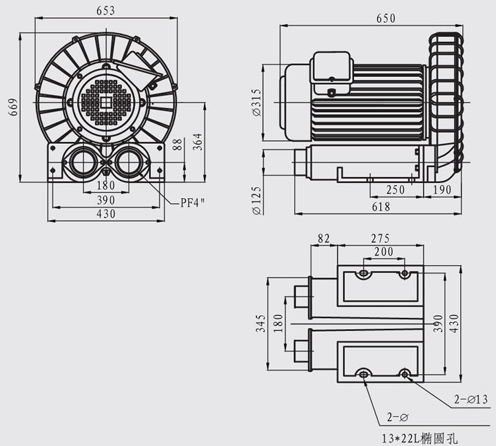 全风环形高压鼓风机RB-1515尺寸图如下: