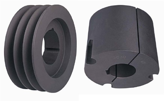 锥套皮带轮是一种欧美普遍使用的机械传动联接部件,通过8度外锥面与皮带轮内锥面压紧联接,使传动件的定心精度大大提高。锥套尺寸为系列标准设计。其内孔键槽按ISO标准加工。通用性互换性很好,适用各种场合. 当传动件经过长时间运转时,内孔及链槽就可能发生损坏,如果是使用这种锥套的传动件,发生这种情况时,只需更换同一规格锥套就可以恢复使用。因而大大提高传动件使用寿命,降低维修费用,节省时间。