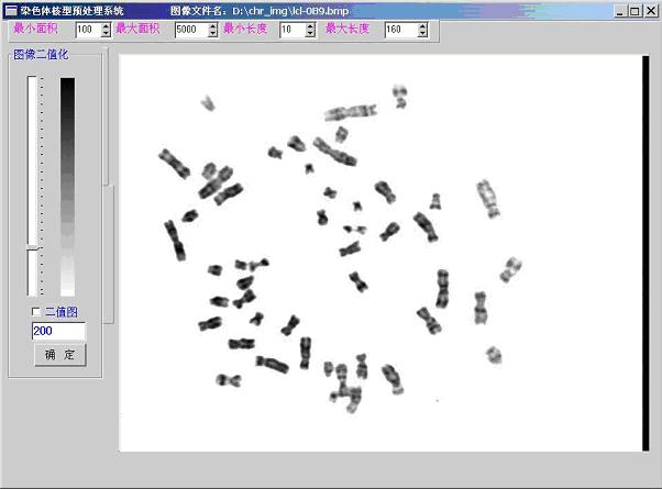 本系统的性能指标如下:分析速度:分析一个核型的时间2~3分钟;分析的准确性:>93%。