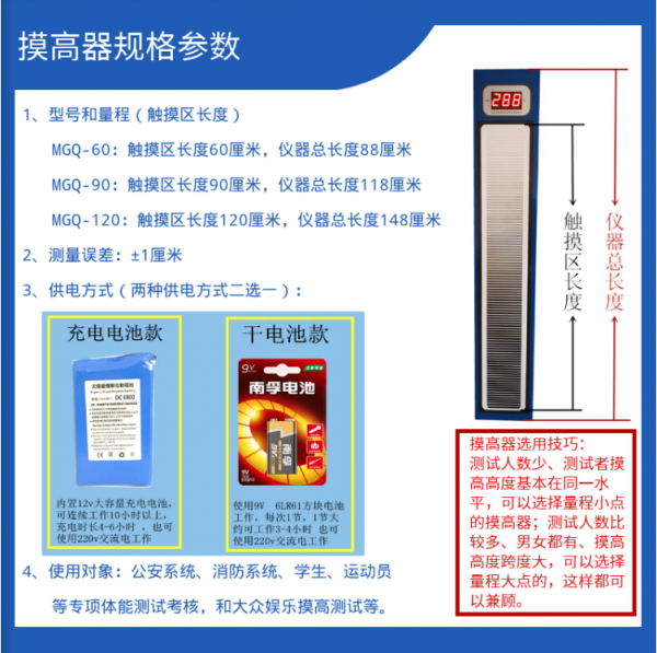 宏康达电子摸高器 电子摸高器说明: ??? 电子摸高器是一种的的体质测试、体能锻炼测试仪器