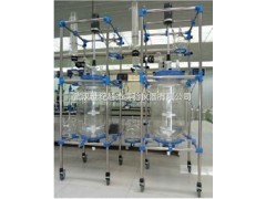 整体不锈钢立柱移动式框架结构,五口反应釜盖,具回流、加液、测温等全套玻璃。