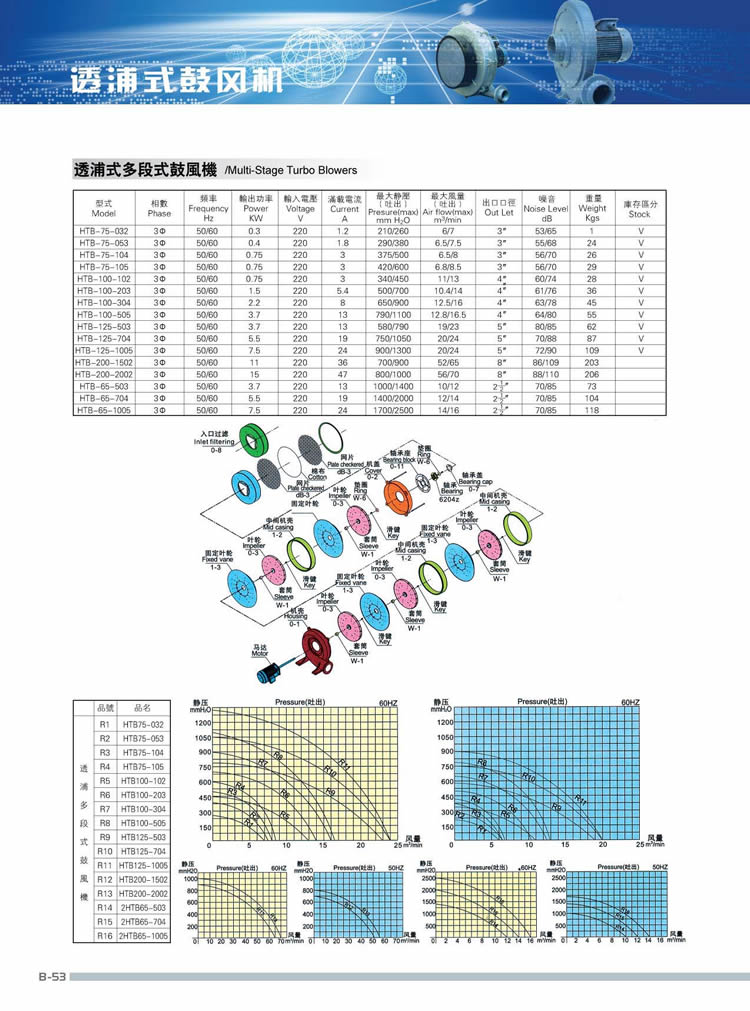全风鼓风机 全风透浦多段式鼓风机HTB透浦式风机技术参数: