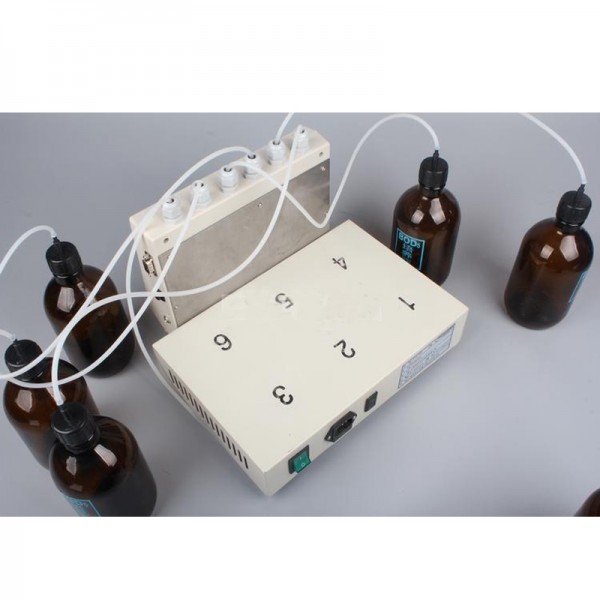 主机:在实验时,主机放入培养箱(选配或自备)内,主机内有6只磁力搅拌器,实验过程中它带动培养瓶内的搅拌子对水样进行搅拌,以促进培养瓶内空气中的氧气溶解于样品液中,保证在整个实验过程中,水样中的微生物有足够的溶解氧进行生化反应。