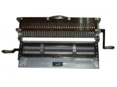 该设备是通过一根具有螺旋带的轴旋转360°,在不同角度顺序抬起冲头,并借助弹簧的弹力顺序冲击打点。手柄摇动一周即可在样坯上打出直线排列间距为10mm共41点(总长10mmX(41-1)=400mm)的准确试样。