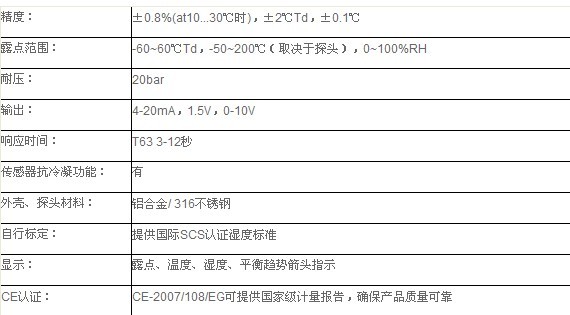 →快速显示露点、湿度、温度值精度:±0.8%(at10...30℃时)露点可达-60℃