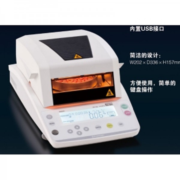 MOC-63U水分快速测定仪又名快速水分测定仪、电子式水分仪,用来测量样品中水分含量的仪器应用于高校科研院所(科研、毕业设计),粮食、食品、(质检、生产部 ),饲料(质检、生产部)化工、医药(质检部),农业(质检),林业和造纸业(质检部)质量监督、环保行业,以及纺织、造纸、橡胶、塑胶、纺织等行业中的实验室与生产过程中运用。