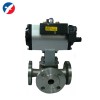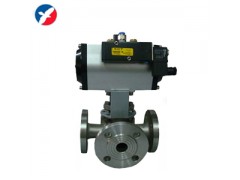 气动法兰三通球阀用于分流或汇合流通,是具有二面或四面阀座的多通口球阀,任一通口可用作入口而无泄漏。三通即可制成L型通口也可制成T型通口。L型三通球阀适用于介质流向的切换,能使相互垂直的两个通道连通:T型三通球阀适用于介质的分流、合流或流向切换,T型孔道可以使三个通道互相连通或使其中两个通道连通,三通球阀一般采用两个阀座结构,亦可根据用户要求采用四阀座结构。