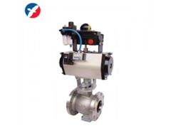 气动V型法兰球阀利用球芯转动与阀座相割打开的面积(V形窗口)来调节介质流量,调节性能、自洁性能好,适用于高粘度、悬浮液、纸浆等不干净、含纤维介质场合。采用直连方式与执行机构连接,具有结构紧凑、尺寸小、重量轻,阻力小、动作稳定可靠等优点。执行机构根据用户要求配置GTD、AT、AW系列等气动活塞式执行机构。