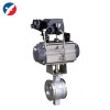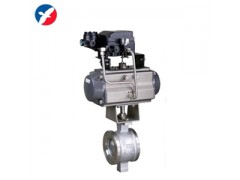 气动V型调节球阀利用球芯转动与阀座相割打开的面积(V形窗口)来调节介质流量,调节性能、自洁性能好,适用于高粘度、悬浮液、纸浆等不干净、含纤维介质场合。采用直连方式与执行机构连接,具有结构紧凑、尺寸小、重量轻,阻力小、动作稳定可靠等优点。执行机构根据用户要求配置GT、AT、AW系列等气动活塞式执行机构。