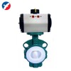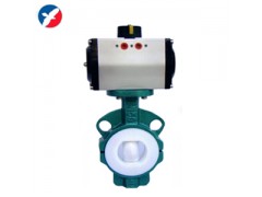 气动衬氟蝶阀是用阀杆一起转动的蝶板作启闭件,用以实现阀门的开启,关闭与调节。气动衬氟蝶阀是在过流部件、阀体、蝶板、阀杆上采用衬里技术衬里较厚的高分子材料,防腐蚀性能优良,可适用于任何浓度的酸、碱、盐及氧化剂、还原剂、有机溶剂等介质,是化工、石油、医药、食品、钢铁冶炼、造纸、水电等系统的气体、液体、半流体的管路和容器上作截流和调节设备使用的理想产品,并可取代闸阀、截止阀和其它类型的切断、调节阀门。