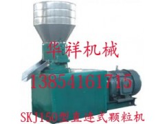 华祥SKJ120、150、200、250、320型颗粒机是养鸡,鸭,鱼,虾,兔,猪,羊,牛,畜,禽,水产类等饲料加工必备的理想设备,该机吸取外饲料机之精华,“心脏部件”——摸板,压轮(比一般饲料颗粒机寿命长5—7倍,保证个体户生产数万公斤以上),该机采用汽车差速。万向节传动,机械性能更加可靠,是产品。操作方便,噪音小,不加水,颗粒坚硬,光洁,干进干出,各类秸杆粉碎后,用量占65%以上,玉米,大小麦,稻谷等籽颗粒粉碎后可直接加工,颗粒含水量低,含水量均为粮食储藏标准,生产过程中能使饲料熟化,既能提高营养成分吸收效率,又能杀死一般致病微生物寄生虫。是干进干出新一代产品。该产品适合饲料厂,个体专业饲料加工户,是投资小,见效快,无风险的加工机械。