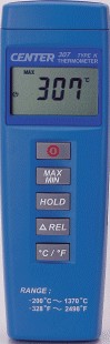 CENTER 307数位温度表 是一具以K-type热电偶温度感测器为Sensor的数位温度表.其中的热电动势与温度转换关系以IEC458标准之K-type转换函数定义.