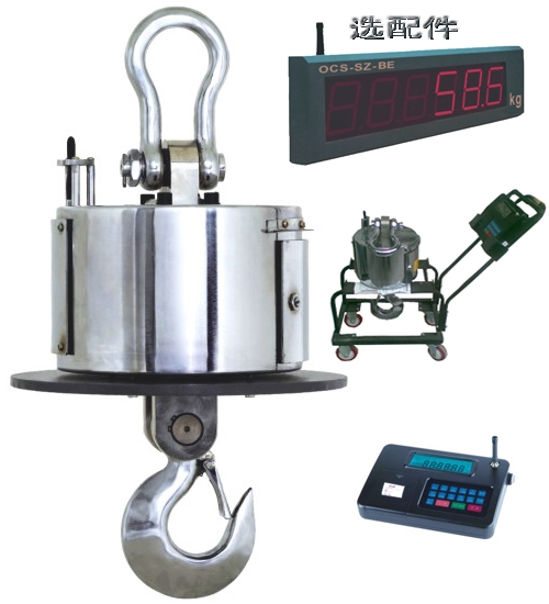 无线遥传式吊秤(OCS-SZ-BC)型号特性:1,计量准确,显示分度值可任意设定.2,全钢结构外壳,耐碰撞,抗电磁干扰.3,秤体内采用了本公司产品LN吊秤专用传感器.4,液晶显示这LED炫彩背光,无线数传距离无阻挡时大于300米.5,信号强度,电源情况监测系统.6,工作温度可根据用户需求定制常温型-15摄氏度~55摄氏度。7,仪表采用6V/4Ah镍氢可充电电池供电,秤体采用大容量6V/10Ah铅。8,蓄电池多达2900组称重数据的海量存储。SZ-BC壹吨自重33公斤,SZ-BC-贰吨自重33公斤,SZ-BC-叁吨自重33公斤,SZ-BC-伍吨自重47公斤,SZ-BC-拾吨自重52公斤,SZ-BC-拾伍吨自重82公斤,SZ-BC-贰拾吨自重82公斤,SZ-BC-叁拾吨自重163公斤,SZ-BC-肆拾吨自重268公斤,SZ-BC-伍拾吨自重268公斤。