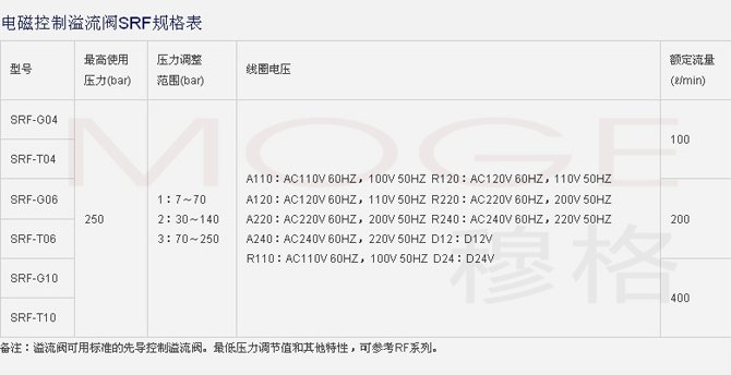 3、电磁控制溢流阀SRF连续工作的温度为-17+70°C。