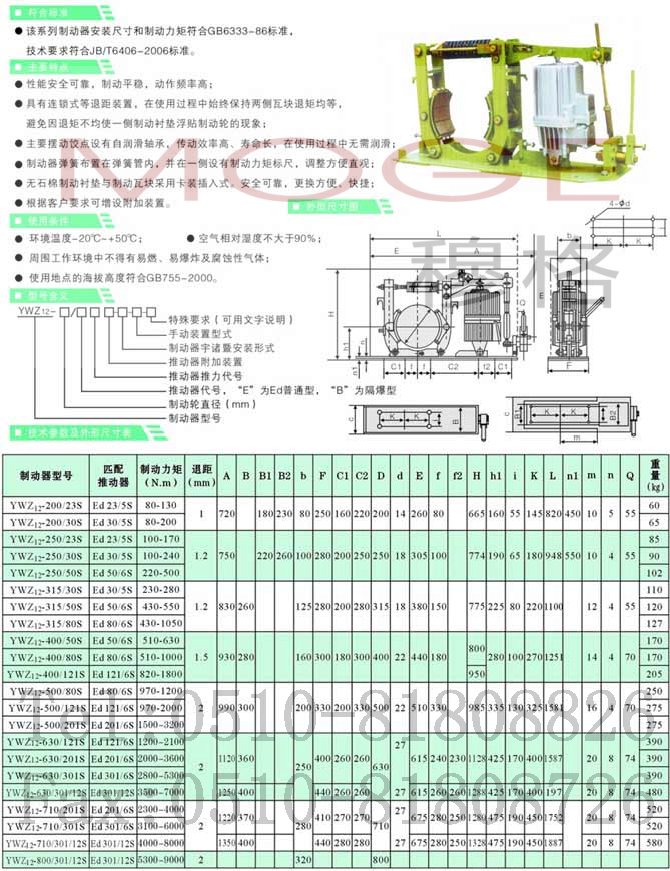 YWZ12-500/121S,YWZ12-500/201S,YWZ12-630/121S,液压制动器价格,液压制动器生产厂家,MOGE穆格,
