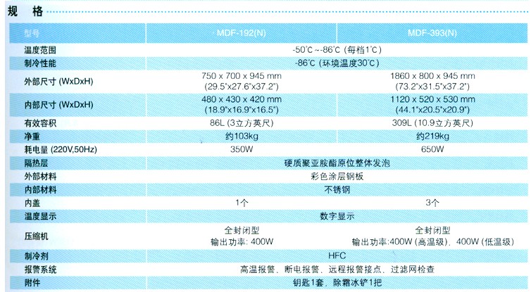 三洋MDF-393(N)卧式超低温冰箱参数:
