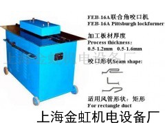 FEB-16A联合角咬口机(又称咬边机,辘骨机,咬缝机)是上海金虹机电设备厂生产的新一代咬口机。采用了弹子盘组成及大模数传动齿轮