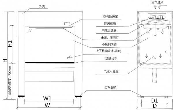 1、准闭合式玻璃风门,可有效防止外部气流透入,及操作异味对人体的刺激