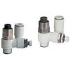 SMC直接安装型速度控制阀的阀芯有三个工作位置,平时不通电,处于微启状态,阀门提供初始流量;给一种电信号,电磁阀全开,提供大流量;给另种电信号,阀门关阀。阀门还带有手动装置,使得长期关阀时也不需耗电。三位电磁阀可视为一种结构更为紧凑的双联电磁阀,它很方便地实现三位调节,得到了很多应用。 进一步的思路是n个大小成一定比例的电磁阀组成2n种流量,类似于数字电路称这种组合阀为数字阀。实际上两个大小不同的双联阀或三位阀就可产生24=16或32=9种流量,已经能达非常高的精度。从原理上说,它与工控计算机配套具有,但由于应用领域还没有提出大量的需求,这项技术尚处于试验阶段。 (3)自保持型电磁阔 自保持型电磁阀就是只需瞬间通电即完成阀门开关动作,阀芯位置不需电来保持。它的优点在于节约能源尤其是用电池作电源的场合,而且可不考虑温升,从而线圈寿命长,在高低温、防爆等场合有较高安全性。常见的有机械式保持和永磁体保持,又分双线圈和单线圈,以单线圈磁保持结构为简单。它是以改变直流电源性改变对应阀门开关的两种状态。