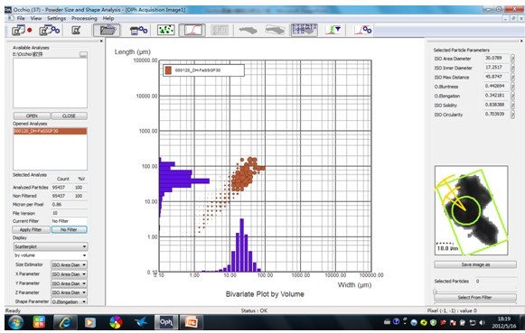 欧奇奥二进制文件格式:包括所有粒径粒形分布,粒径百分比,每个颗粒的概述及灰度文件