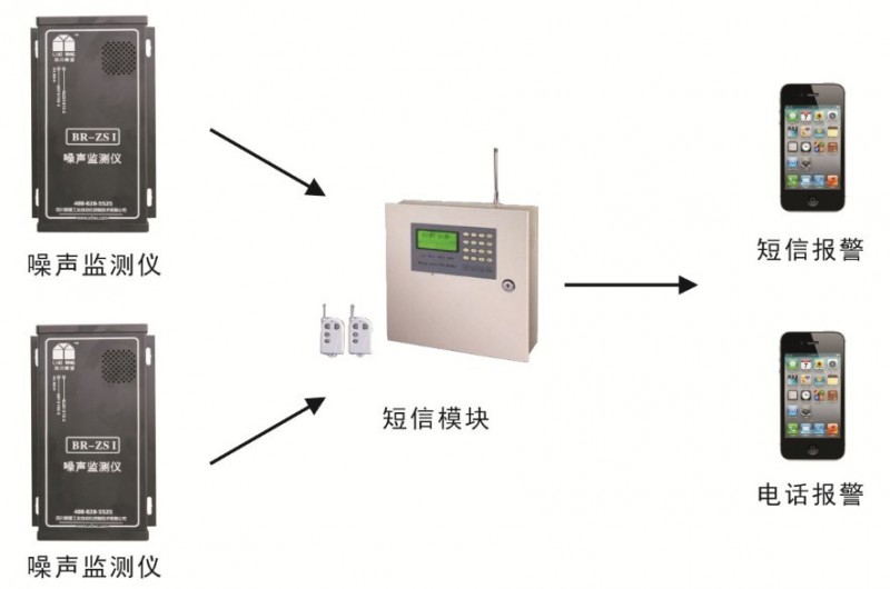 采用BR-ZS1噪声检测仪,将采集到的数据通过4-20mA信号接入短信模块,短信模块设置噪声超标上限,噪声超标及时向值班经理(值班人员)发短息,处理超标噪声的排放。