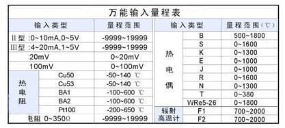 *配接传感器类型:各种传感器均可配接,各种输入信号切换用户可通过仪表自行调节。