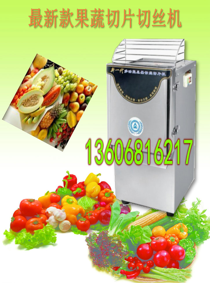 多功能切丝切片机是在吸收同类产品之处和广泛听取外客户使用意见的基础上设计改良而成,其构思新颖、结构紧凑、外形美观、安全卫生、性能良好,符合卫生的标准,是萝卜、土豆、红薯等瓜果类蔬菜切片和切丝和理想厨房设备本机采用半月刀调节结构,不用更换刀片,只须使用不同进料斗和点动倒顺开关即可进行切丝切片工作,工作厚度可在一定的范围下进行调节。本机调整简单,维护清洗方便,造用于机关事业单位、部队、学校、食堂以及宾馆,酒家和餐厅使用。