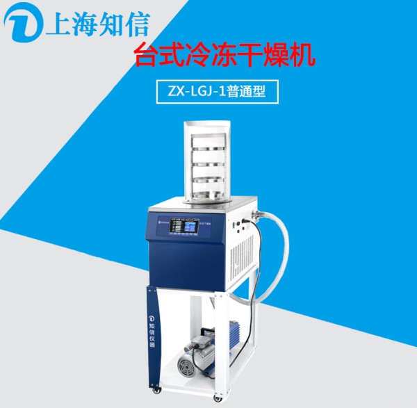上海知信台式冷冻干燥机 ZX-LGJ-1真空冷冻干燥机 冷冻干燥机是将含水物品预先冻结,然后将其水分在真空状态下升华而获得干燥物品的一种技术方法。经冷冻干燥处理的物品易于长期保存,加水后能恢复到冻干前的状态并保持原有的生化特性。对于热敏物质如抗菌素、疫苗、血液制品、酶激素和其它生物制品,冷冻干燥技术更能显示其优越性。