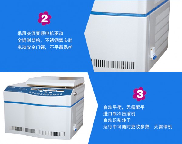 台式结构,外观设计新颖,采用交流变频调速,微电脑控制,zui高速转速18000rpm,zui大相对离心力23846×g。