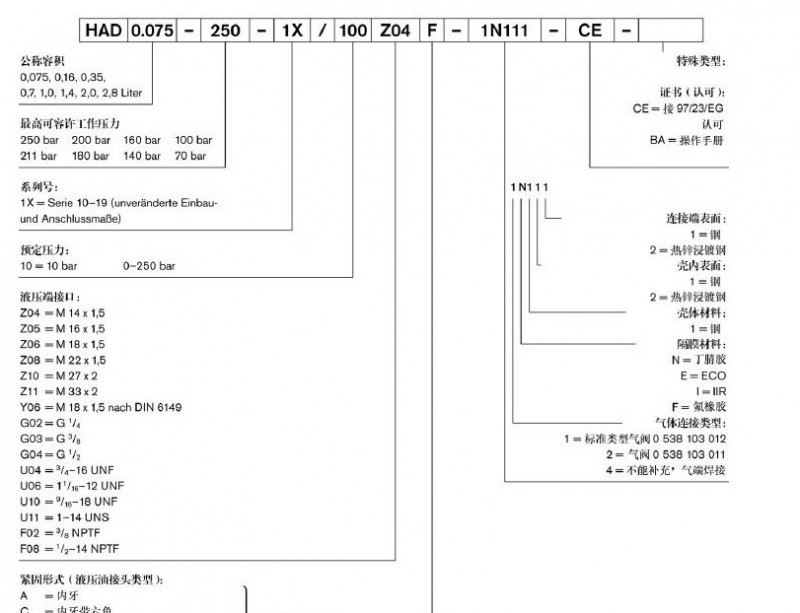 力士乐隔膜式蓄能器zui高工作压力33公称体积0.075-2.8